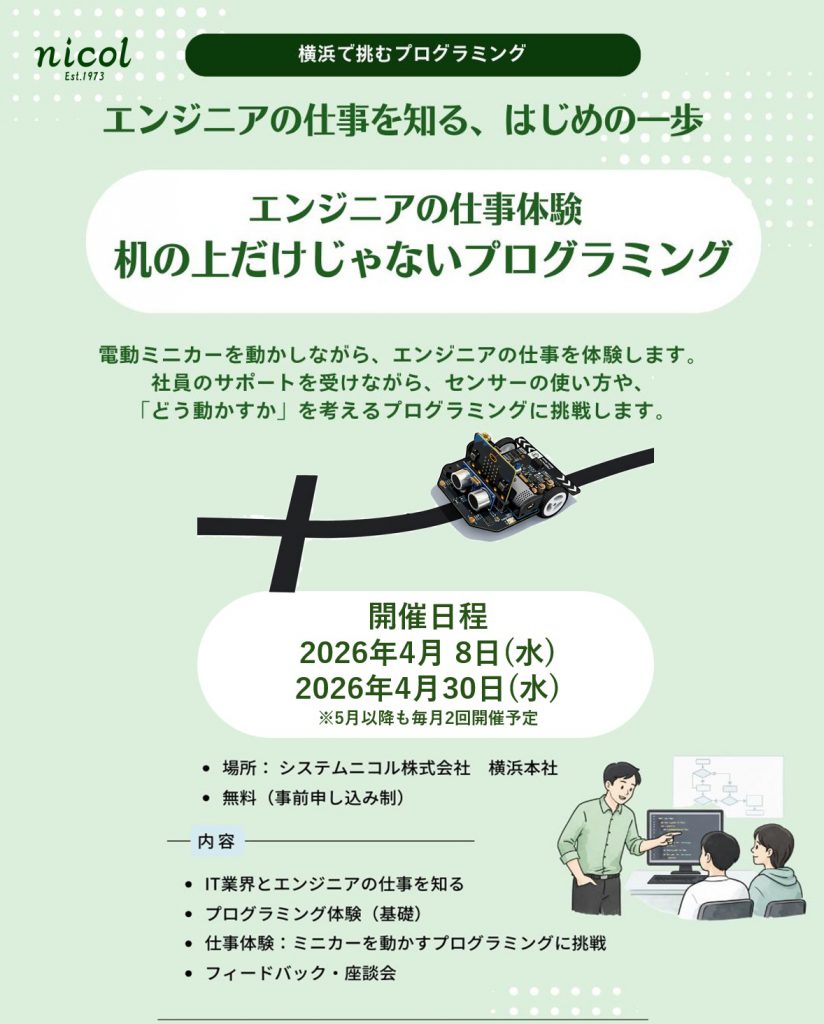| 2026/4/8(水) | 9:30~15:30 | 神奈川 | システムニコル本社(横浜) |